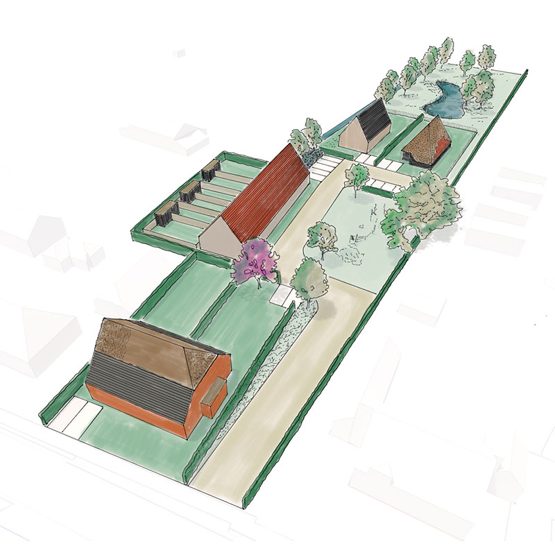 Het ontwerp voor de nieuwe entree van de Orthen begraafplaats streeft naar een gastvrije, toegankelijke, en harmonieus geïntegreerde toegangspoort voor bezoekers en inwoners van ’s Hertogenbosch. Het ontwerp straalt ingetogenheid, natuurlijke schoonheid en sereniteit uit, en benadrukt duurzaamheid door hergebruik en mooi verouderende materialen.